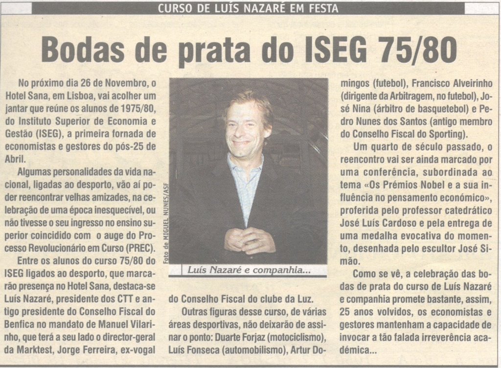 - [2005-10-31] Notícia de A Bola sobre o jantar